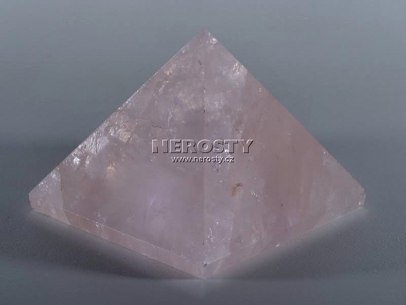 Pyramida, vybroušená z kusu nestejnoměrně barevného jakostního růženínu.